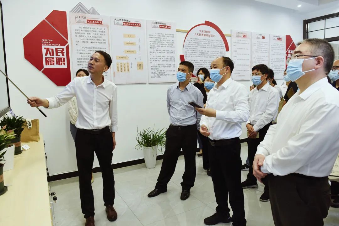 6月1日,天台县人大常委会主任朱良其带队来我市调研践行全过程人民民主基层单元建设工作。温岭市人大常委会主任朱明连、副主任李海兵陪同调研。